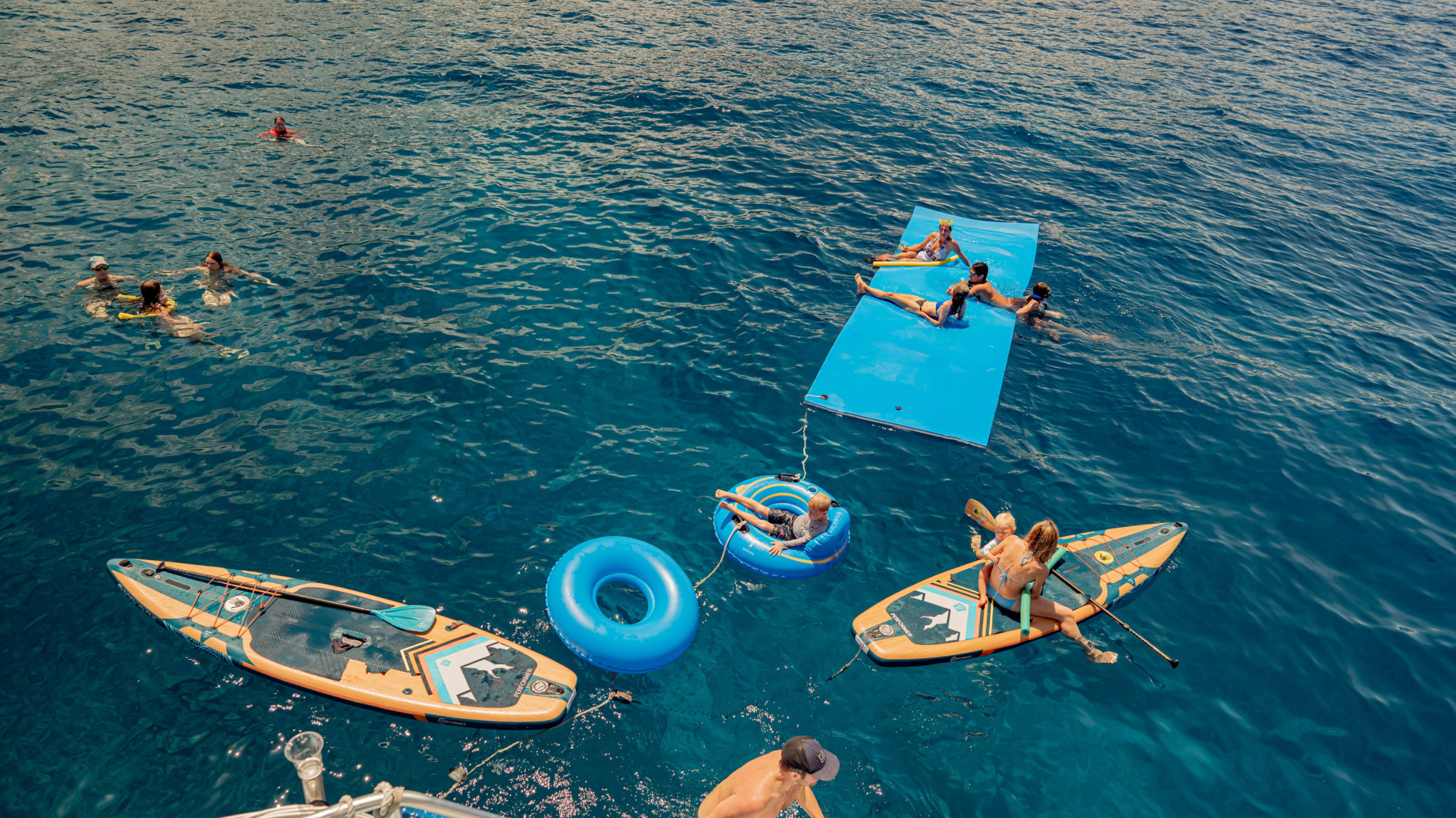 Breakfast? Check. BBQ burger lunch? Double check. Snorkel gear, water slide, jump platform, paddle boards, and even a floating “island” to relax on? Absolutely.