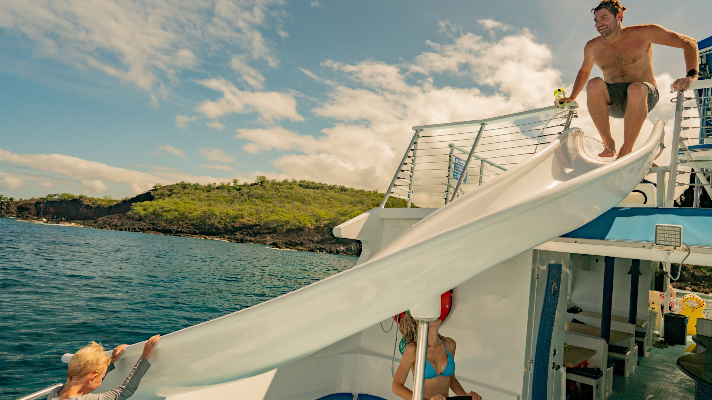 Definitely! Kids love the water slide, jump platform, and calm snorkel spot. Plus, we’ve got life vests, noodles, and a crew ready to help little snorkelers feel safe.
